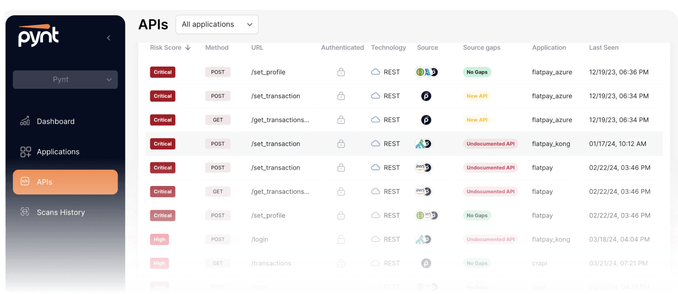 Pynt’s solution starts with API discovery. Pynt supports multiple sources to build a comprehensive API catalog and reveal shadow APIs and hidden spots, from testing tools like Postman and Selenium, Browser and Burp logs, and live traffic such as eBPF or ALB mirroring. Pynt can detect any external or internal API. Explore our integrations to check out our discovery sources.